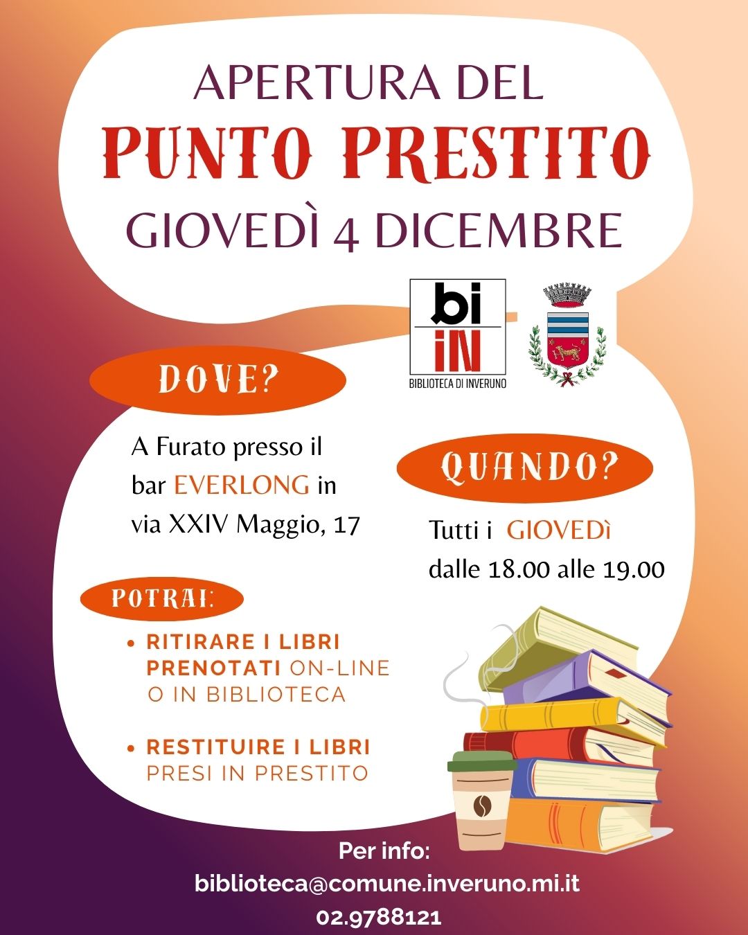 Da giovedì 4 dicembre sarà attivo il nuovo servizio di PUNTO PRESTITO della Biblioteca di Inveruno nella frazione di FURATO.