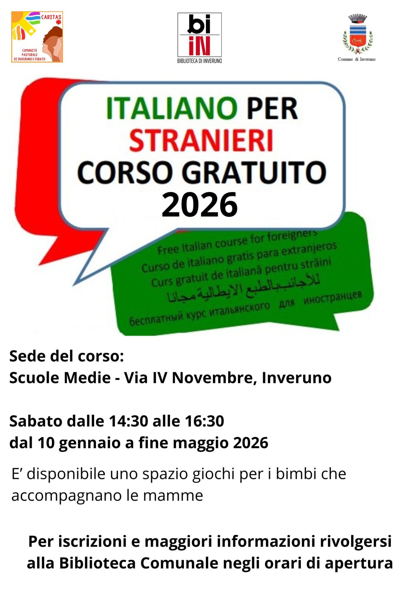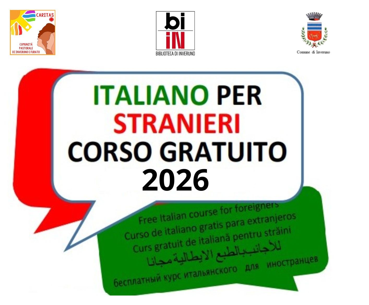 La Caritas - Comunità Pastorale di Inveruno e Furato organizza in collaborazione con il Comune di Inveruno un corso gratuito di italiano per stranieri.