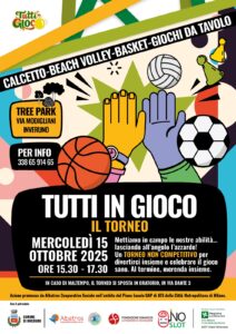 A Inveruno ospiteremo il Torneo Tutti in gioco, mercoledì 15 ottobre presso il T(h)ree Park di via Modigliani dalle 15,30 alle 17,30.