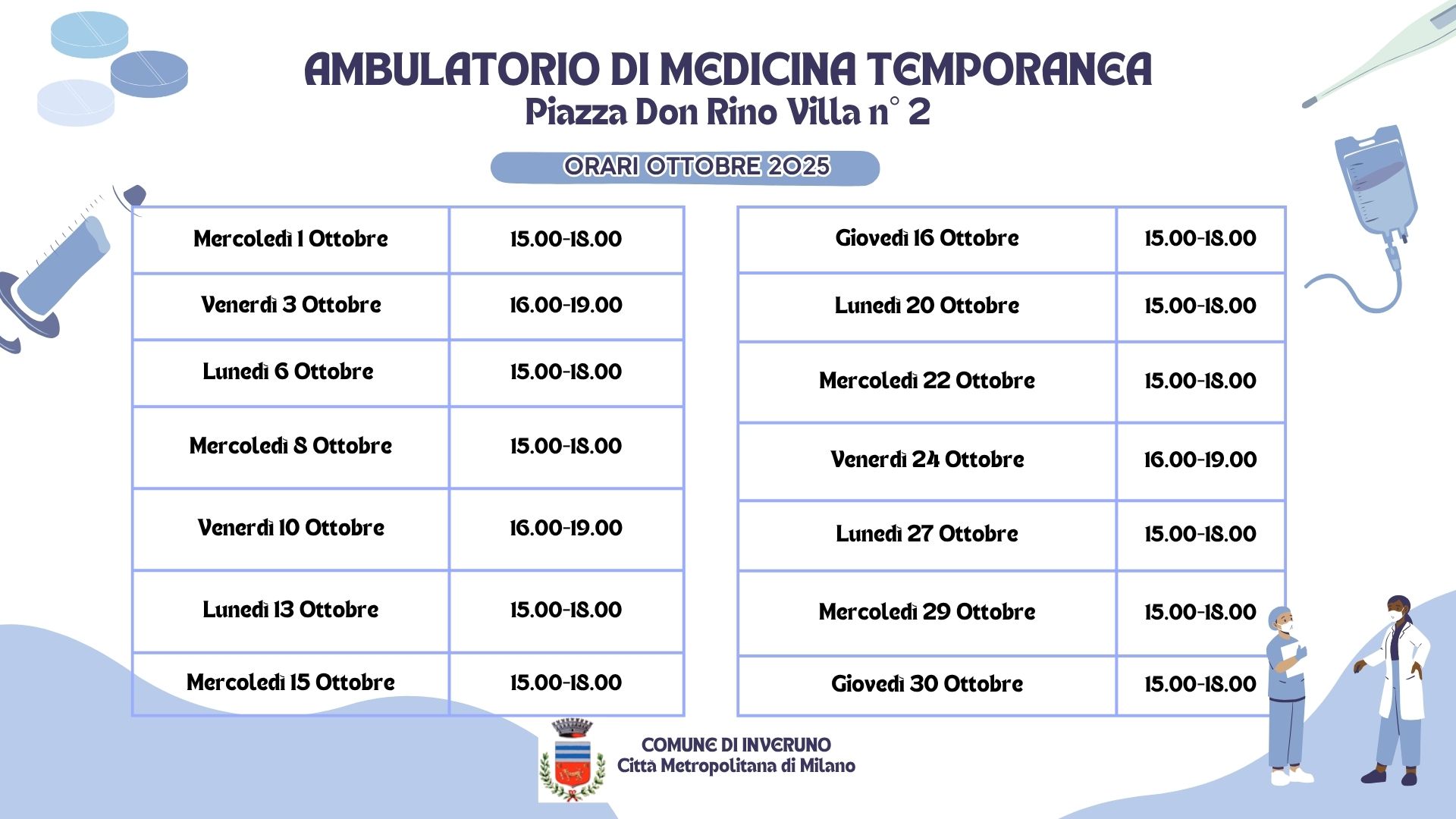 ORARI AMBULATORIO TEMPORANEO COMUNALE: MESE DI OTTOBRE 2025